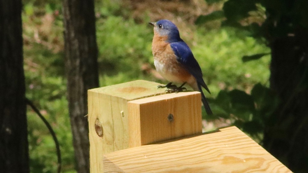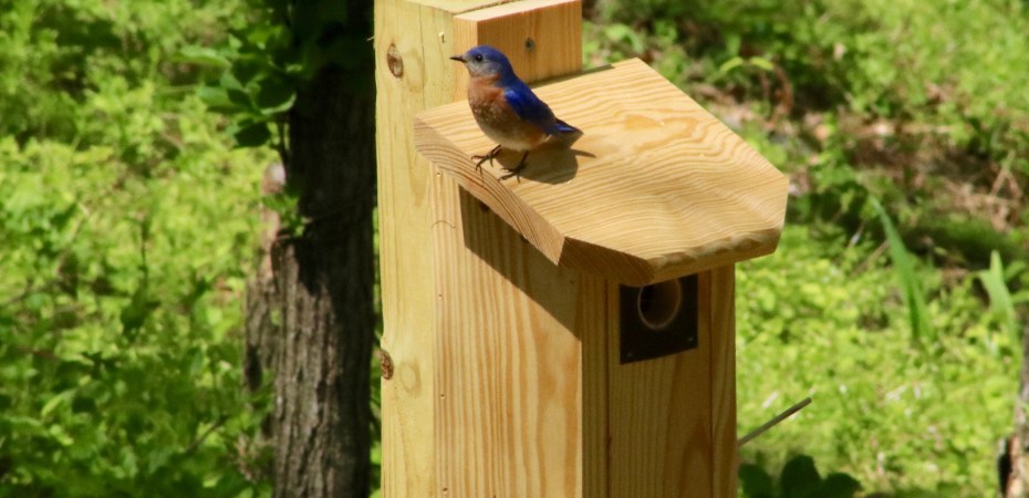 She did that because she knew I liked photographing birds and a group of NC conservationists were trying to encourage the bluebird population in the state. So I brought it home a few weeks ago and picked out a good location down in the back yard and hoped for the best.
