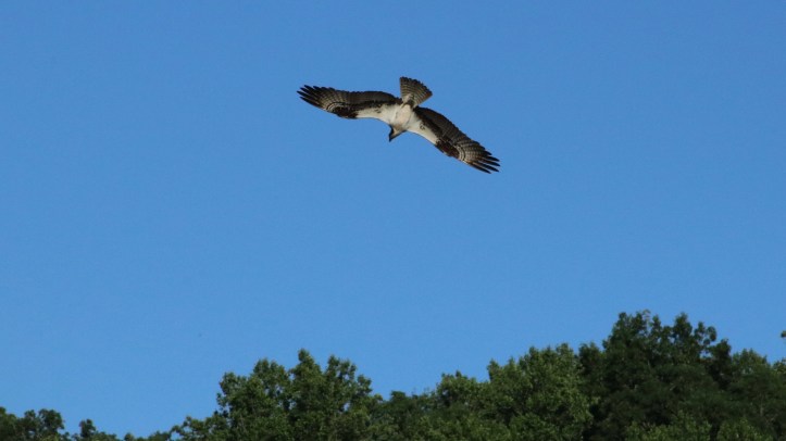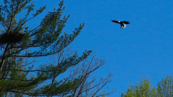 This young Bald Eagle is one of two offspring hatched this year at Lickinghole Basin. This is one of their first flights.